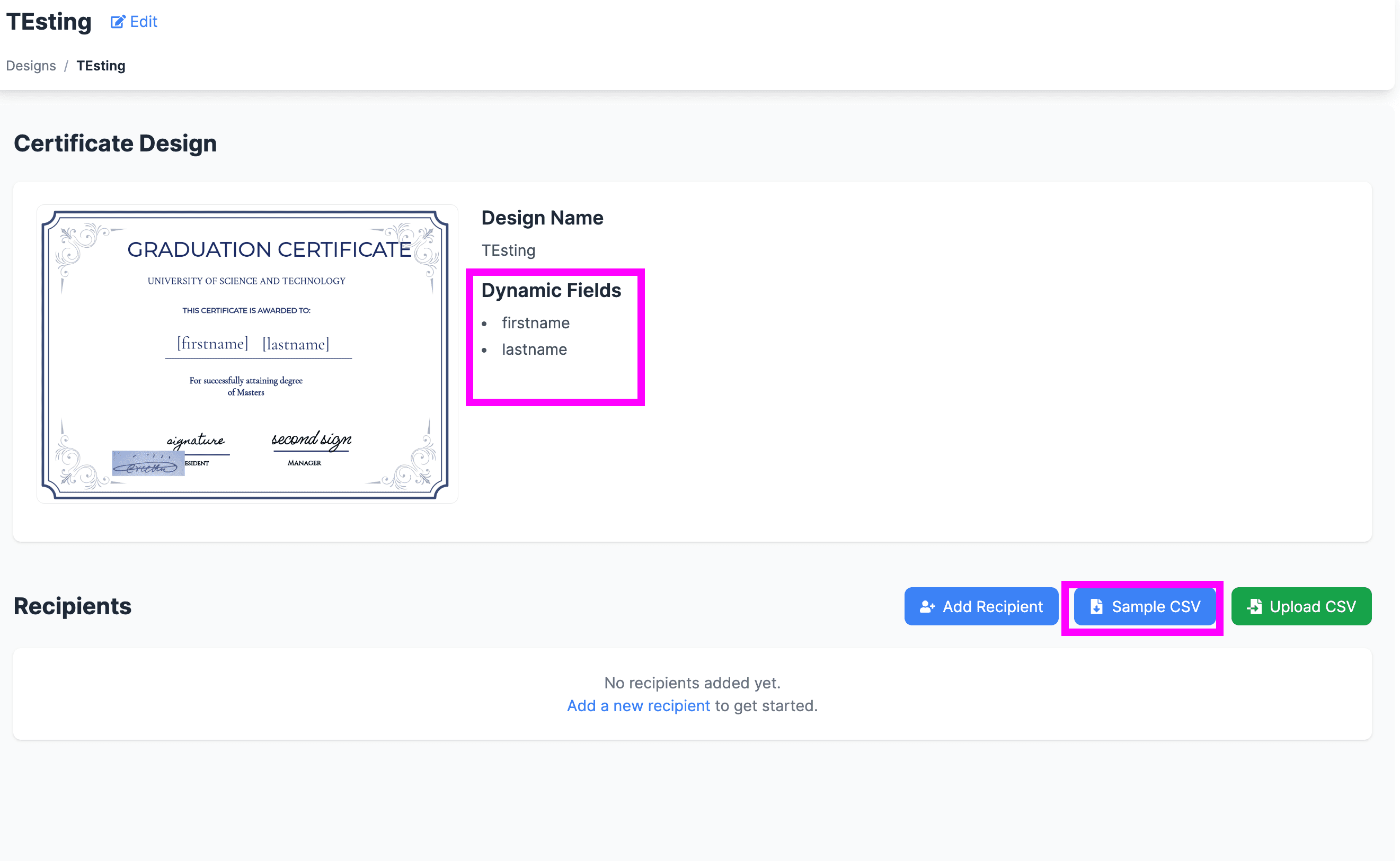 Note: While Dynamic Fields are currently text-based, keep an eye out for upcoming features that will expand this functionality to images—making your certificate designs even more versatile.